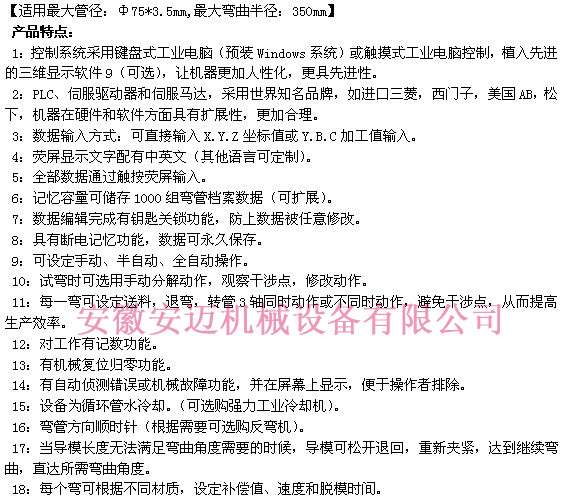 “安邁全自動彎管機SB-75CNC-2A-1S,cnc全自動彎管機質量優(yōu)良 高性價比”參數(shù)說明