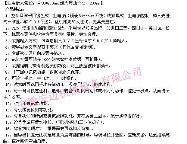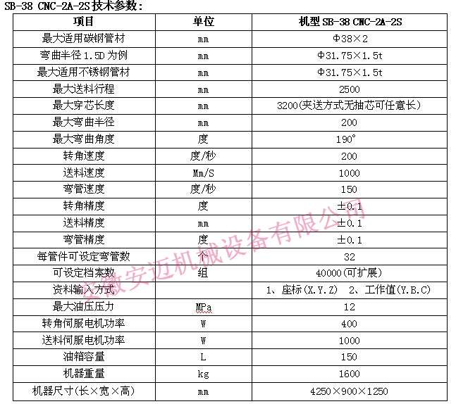 “安邁全自動彎管機SB-38CNC-2A-2S,cnc全自動彎管機質量優(yōu)良 高性價比”參數(shù)說明